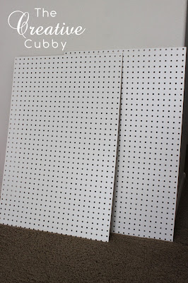 I had two cuts of pegboard sitting around. Once upon a time ago, I had dreamed of using them to organize my crafts. That never came to fruition, so now I had two cuts of 2.5' x 3' cuts of pegboards just begging for new life.
